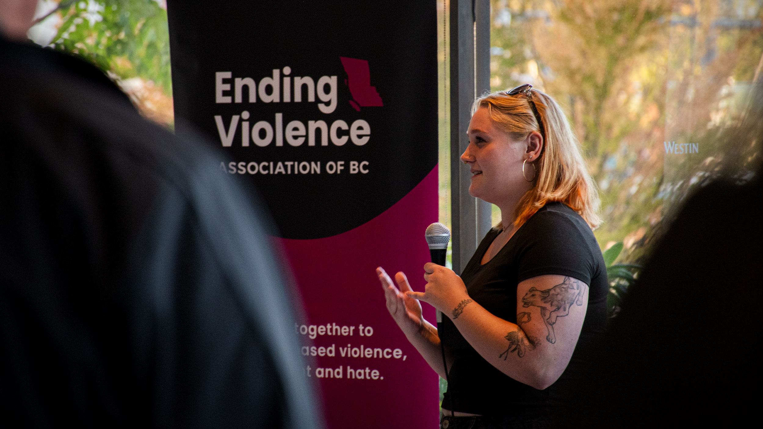 On September 24, EVA BC co-hosted a reception in Vancouver that brought together our long-time partner, the BC Lions, with other champions who have worked to make changes in their workplaces and communities. The reception was an opportunity to celebrate our work together – in high schools, workplaces and other communities – to show participants how to have the confidence and skills to Be More Than a Bystander.