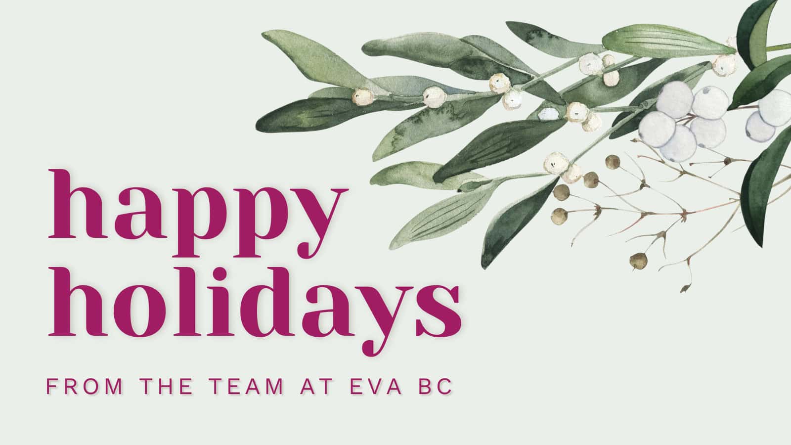 Please note that EVA BC’s office will be closed from December 23, 2023, to January 1, 2024. We look forward to working together with you in 2024.